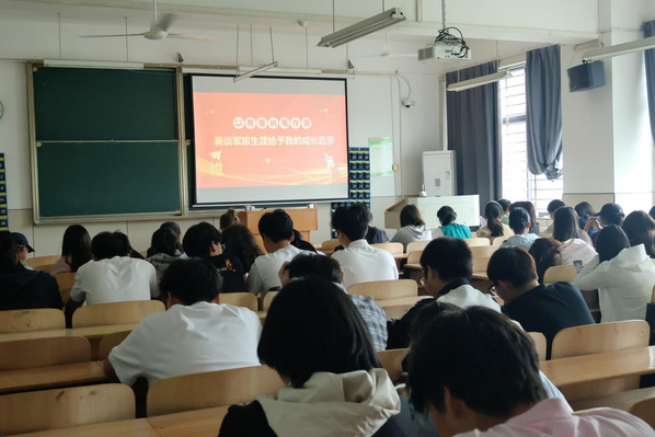 随后,田展学长将话题转向军旅生活,没有聚焦热血场面,而是通过叠“豆腐块”被子、三公里跑步、野外拉练三个日常故事,传递成长感悟。他回忆,刚入伍时因叠不好被子被当众批评,反复练习至手指磨破才明白“专业是把简单事做到极致”;三公里考核不及格时,在班长陪伴下每天提前训练,从“盯着终点”到“拆解小目标”,最终突破自我极限;野外拉练中,战友脚崴,全班合力分担装备、搀扶前行,让他懂得“真正的集体是有人掉队时愿意等一等”。这些真实细节,让新生深刻理解了“自律”“坚持”“责任”的内涵。