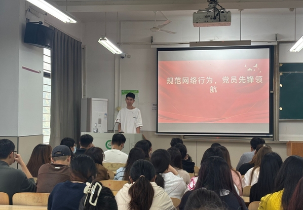 其后她提出要激励党员在“指尖”履行社会责任,让先锋作用落地。通过正面示范和负面警示的案例进行对比剖析,网络违纪“成本低、传播快、影响大”,党员必须严守政治、法律、道德三关。最后,钱梦引倡议全体党员以《党员网络行为规定》为镜,提升网络素养,学网懂网、依法用网、文明上网,通过“一人带一户、一户带一楼、一楼带一片”,把先锋作用辐射至亿万网民,共同构建清朗、安全、共享的网络强国,争做中国好网民。