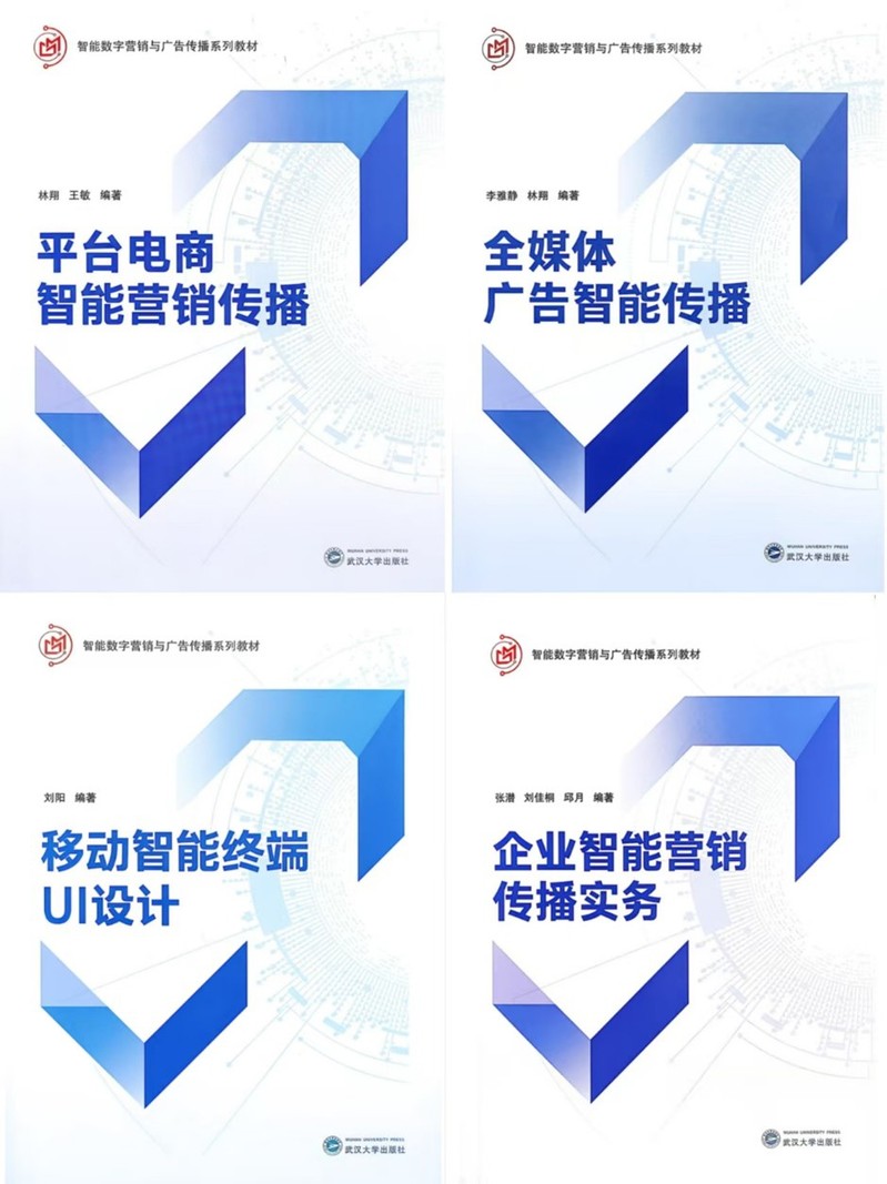 (文法学院讯)丙午新春伊始,由必赢优惠y272net广告学专业团队编著的“广告学国家级一流本科专业建设系列教材”正式由武汉大学出版社出版发行。该系列教材共四本,包括《平台电商智能营销传播》《全媒体广告智能传播》《移动智能终端 UI 设计》《企业智能营销传播实务》,是我校四个国家级一流本科专业建设的重要成果,也是面向新质广告产业重构广告教育知识体系的一次重要实践。