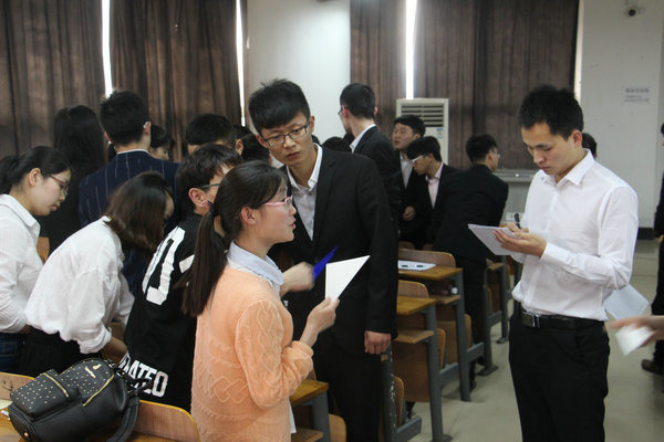 因该公司主要招收管理培训生,物流学院在会前与大道物流做好充分沟通协调,所以要求同学们都身着正装,带上了自己精心准备的简历。面招活动气氛热烈,同学们积极参与到活动中完成计划任务。最后有37名13级学生通过面试,将进入武汉大道物流有限公司实习。