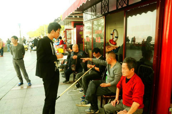 图为党支部成员采访救援英雄施厚超讲述救援事迹 摄影:何育钦