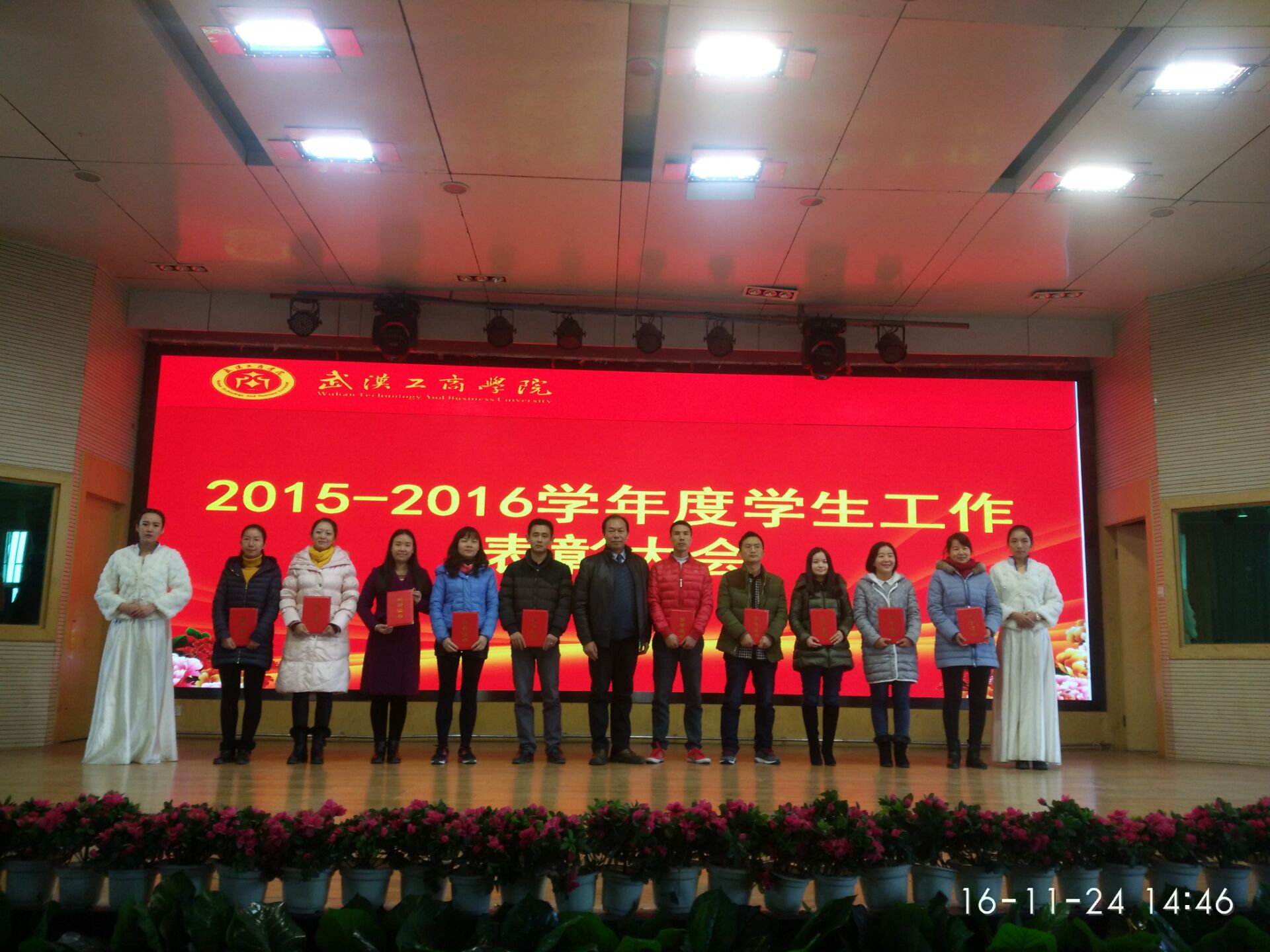 本网讯(见习记者 陈小盼)11月24日下午2:30,必赢优惠y272net2015-2016学年度学生工作表彰大会在该校学术报告厅隆重召开。校党委书记陈伟,副校长桂裕清,党委副书记孙松发,校长助理左宗文、张俊等校领导及学工部、教务部、科研部、组织部、宣传策划部、团委等职能部门负责人,各学院党总支书记出席会议,学校辅导员和学生代表近400人参加了会议。大会由学工部部长陈义文主持。