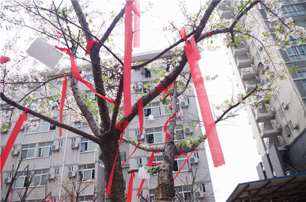 在校综合楼通往一食堂的主干道上九棵大树连成的许愿林中,挂着许多木质的许愿牌。校党委书记陈伟也参与其中,拿起笔来,豪气地在许愿牌上写下“勤于追梦”四个字,并悬挂在心愿林中,激励着莘莘学子。
