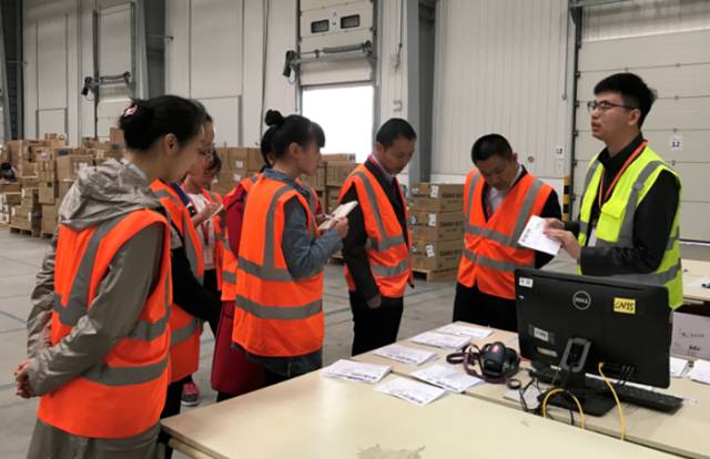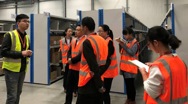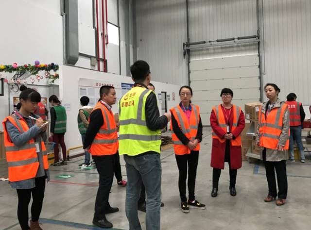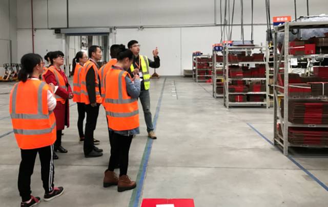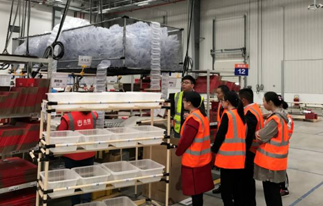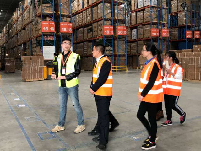 图为物流学院师生参观员工拣选工作区