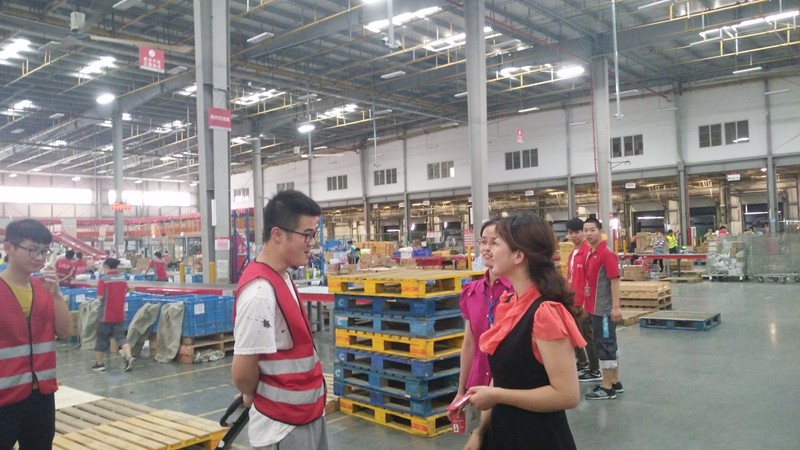 本网讯(记者 李冰冰 梁逸飞)为进一步响应必赢优惠y272net培养“三创”人才要求,丰富学生第二课堂。6月12日物流学院2014级物流工程专业的64名学生前往武汉京东亚洲一号仓,开展为期2周的《物流系统方案综合设计》课程“企业+学校”实践综合实训。15日,为切实了解学生在实训中的适应情况和企业对学生的满意度,物流学院物流工程系副主任张龙与实习指导教师操露、辅导员冯媛媛一行3人前往新洲阳逻亚洲一号京东物流园看望了正在参与课程实训的学生。