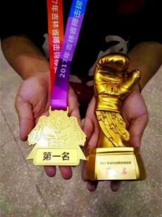 原来,18岁的武明泽在开学之前,刚刚参加完2017吉林省搏击锦标赛,并斩获了85公斤级散打冠军。