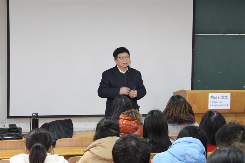 图为:物流学院名誉院长周建亚教授为同学们介绍此次大赛