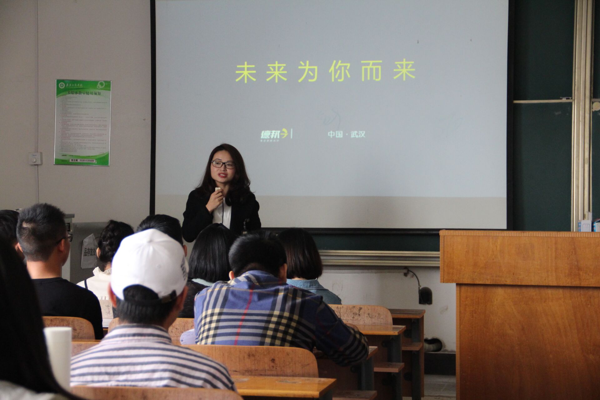 招聘前,武汉德邦物流有限公司人力资源部高级经理胡亚男通过多媒体为同学们详细介绍了公司的发展状况,薪资福利及未来晋升渠道。她表示,公司99%的管理人员由内部产生,所有员工可以选择管理和专业两条道路发展,员工可以结合自身情况选择合适的通道,且专业和管理通道可同时进行。