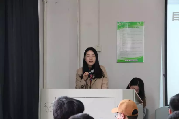 图为客服部学习发展组宋义惠为同学们介绍客服职位的基本情况 摄影:关翘楚