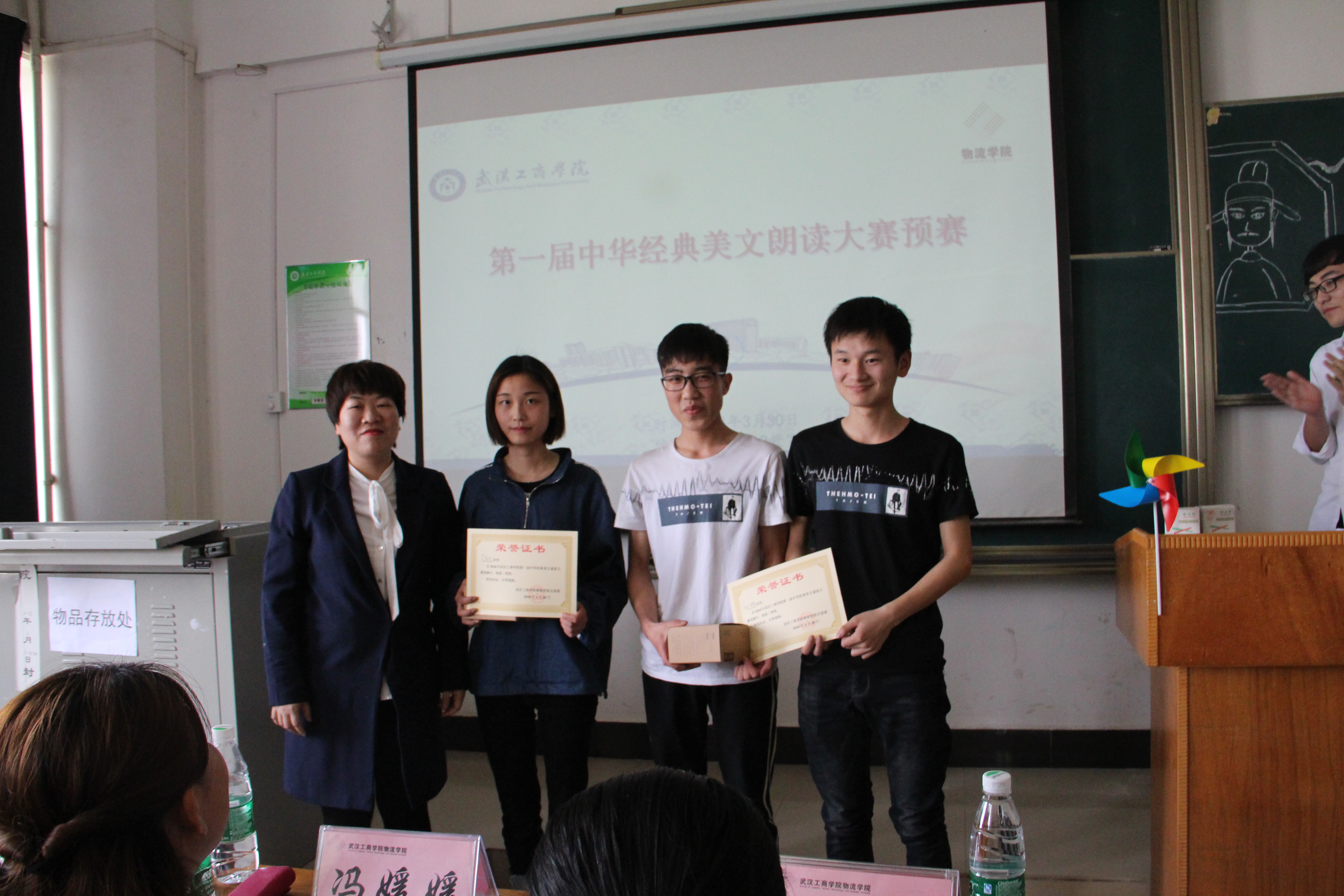 本网讯(记者 汤洋茜 黄翼飞)为丰富校园文化生活,提高普通话和朗诵水平,2018年3月30日中午12时,物流学院分团委学生会在综合楼612主办首届经典美文诵读大赛。物流学院党总支书记蔡菁、分团委书记田飞燕、学生党支部书记冯媛媛、分团委副书记周洲、物流协会会长王长祥、马克思主义研究者协会会长夏金梅,青年志愿者协会会长苟长江作为本次比赛的评委,比赛由郑玉鹏主持。比赛选手是来自16级和17级的12名同学,百余名师生观看本次比赛,现场气氛热烈。