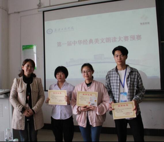 比赛最终决出一等奖1个,二等奖2个,三等奖3个,优胜奖4个。16级物流工程一班的赵婷婷以《少年中国说》夺得本次比赛的一等奖;16级物流管理二班李紫珍带来作品《青玉案·元夕》、17级物流管理二班黄翼飞和袁仲带来作品《沁园春·长沙》获得二等奖;16级物流管理一班黄力力和三班汪梦瑶、17级物流管理一班李旭获得三等奖。党总支书记蔡菁、分团委书记田飞燕、学生党支部书记冯媛媛、分团委副书记周洲依次为获奖者颁发荣誉证书和奖品。