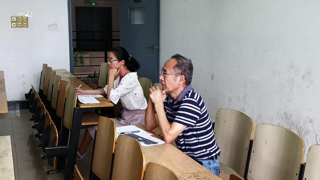 图为张培林院长与周小芬副院长在听任课老师授课情况