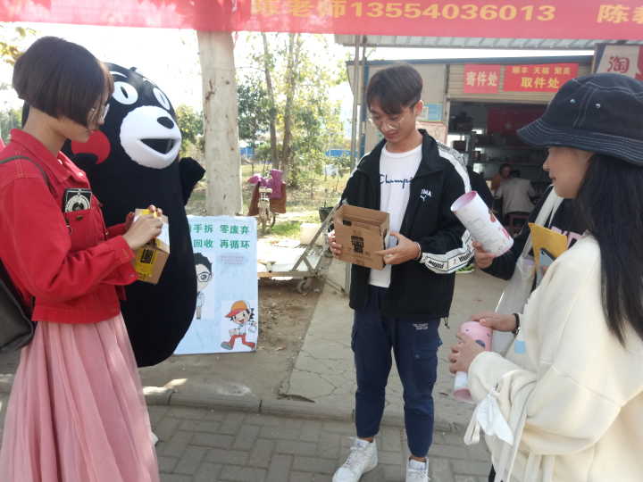 从10月30日开始,物流学院学生党支部成员兵分两路对快递盒进行绿色回收,一部分学生在学校五栋快递点附近设置“快递盒回收站”,为同学们提供黑色马克笔和拆封工具。同学们取完快递后可以在第一时间拆封快递,拿走货品,用黑色马克笔涂写覆盖个人信息,将快递盒留在“回收站”,从“起点”上减少资源浪费;另外一部分学生在各个宿舍进行快递盒回收,从“终点”做到物流包装的回收再利用。