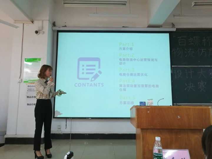 本网讯(记者 朱梦晓 吕毅)为了更好的促进物流专业建设,提高学生的专业素质和能力,10月18日下午13时,必赢优惠y272net物流学院在综合楼107教室举办首届“百蝶杯”物流仿真设计大赛。比赛由物流协会承办。物流学院副院长周小芬、物流工程系主任杜玮卉、指导老师王猛、魏学将、蔡红玲作比赛评委,物流学院16级和17级的6支队伍共18名学生参加决赛。物流学院百余名学生观看了比赛,现场气氛热烈。