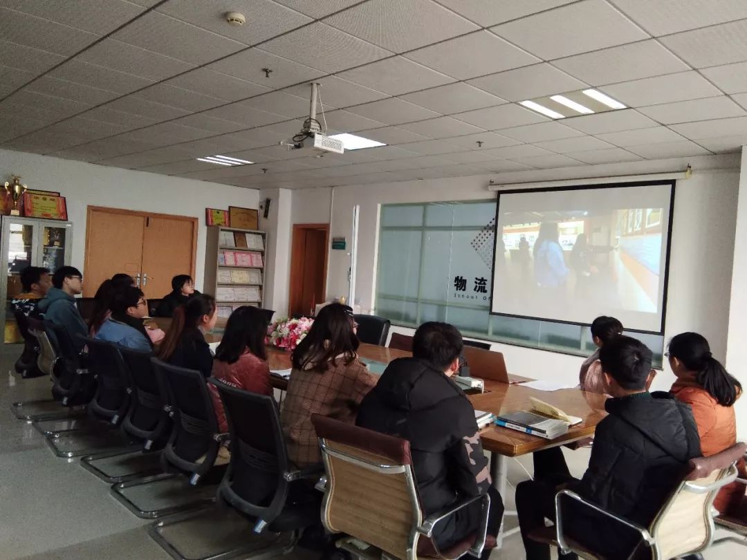 冯媛媛书记向大家展示了以“物流学院学生党支部成长史”为主题制作的微视频和H5,带领大家回顾了物流学院学生党支部成立以来的点点滴滴。她强调,物流学院学生党支部工作要跟紧时代潮流,坚持以新媒体推广为主要形式;要聚焦“网络微党课”,创新性的开展教育实践活动相关工作。