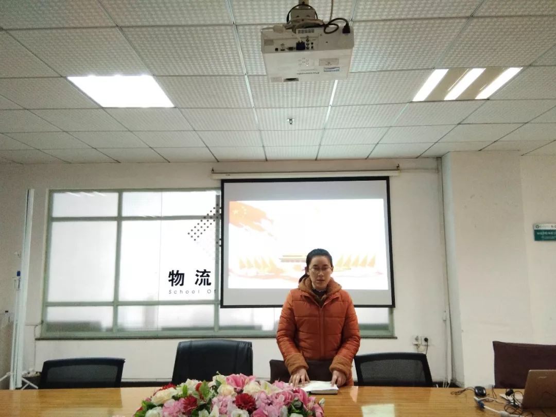 图为物流学院总支部委员会总支部书记蔡菁进行总结