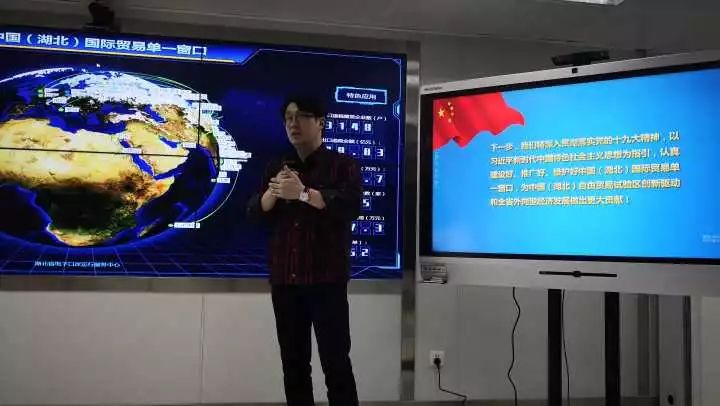 图为湖北省电子口岸运行服务中心负责人介绍单一窗口特色
