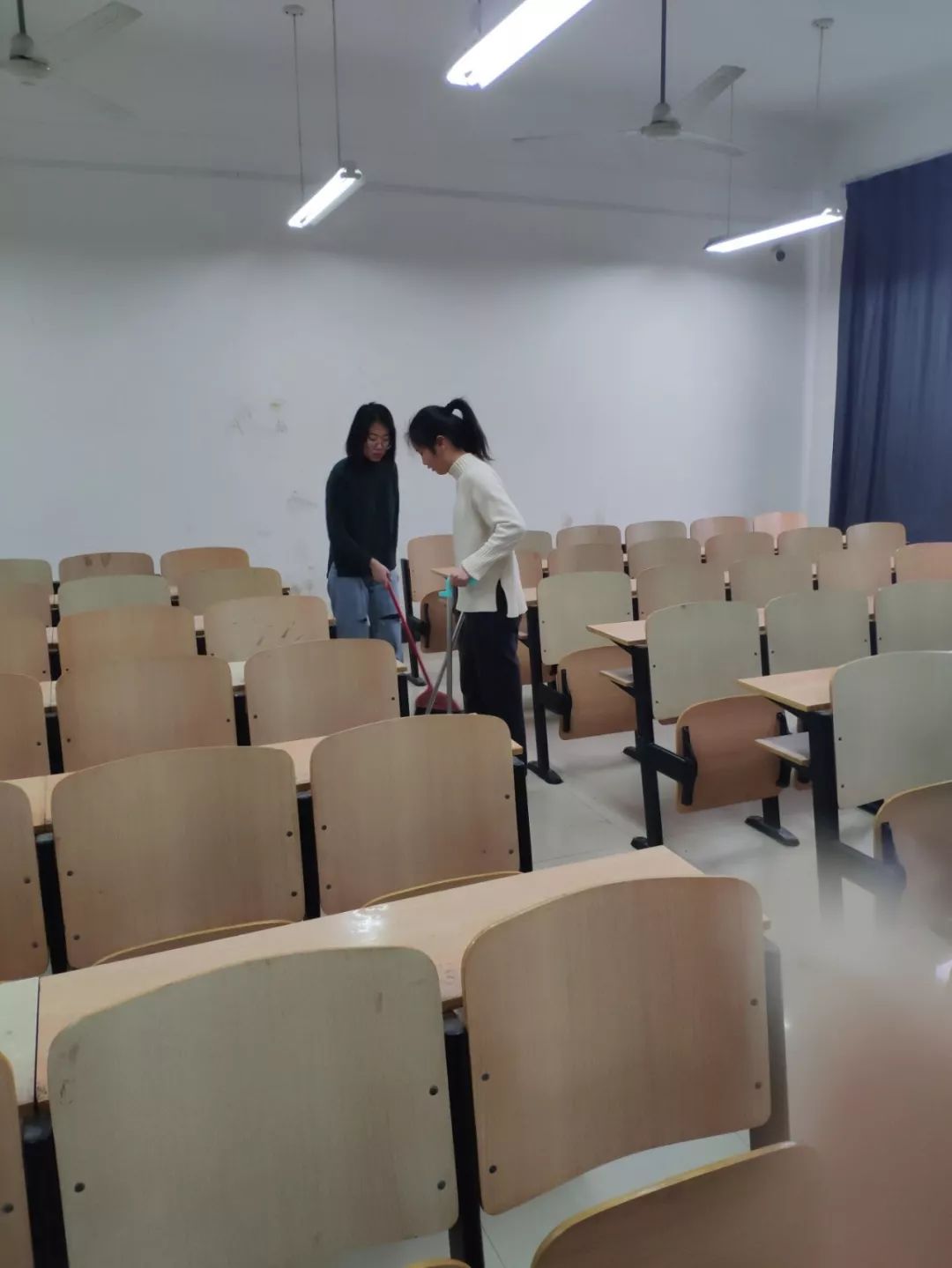 同时,物流青协也以身作则,践行雷锋精神,一群可爱的志愿者主动去打扫教室。