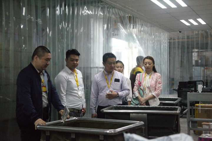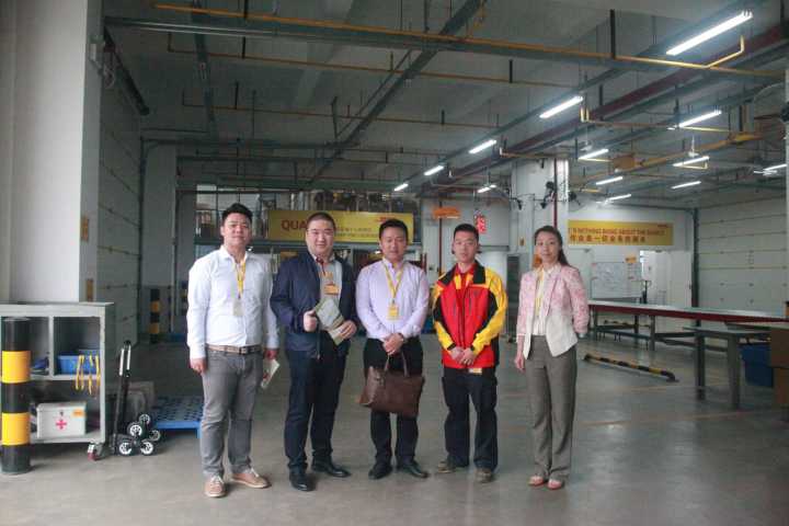 会谈结束后,在物流作业部经理严承的带领下王院长一行参观了企业的物流操作间和操作设备,大致了解了DHL操作流程和工作制度。在参观过程中,老师们见到了正在作业部工作的2018届优秀毕业生余创,与余创亲切的交流了近来的工作情况,并欢迎他返校为学弟学妹做工作经验交流。