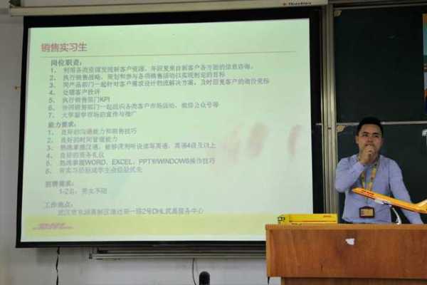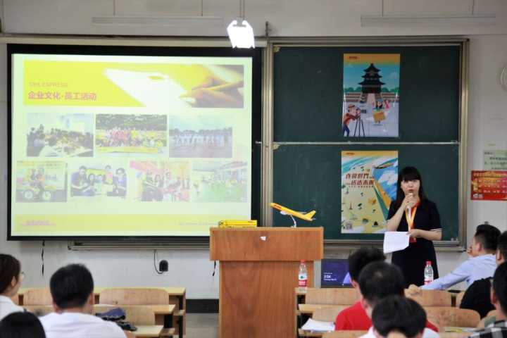 第一位宣讲的是人力资源经理周期。她向大家介绍了DHL针对实习生的各种培养计划,例如实习生岗位体验计划和远程七省实习生交流计划,公司今年着重加强了实习生的培养力度。周经理说:“在DHL实习我们收获的不仅仅只是工作经验,还有更多学习国际物流知识的机会。”