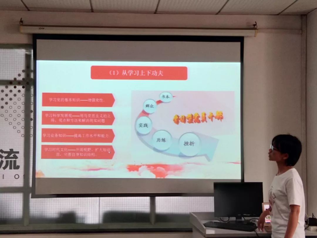 图为优秀党员帅波星为同学们介绍党员八项义务