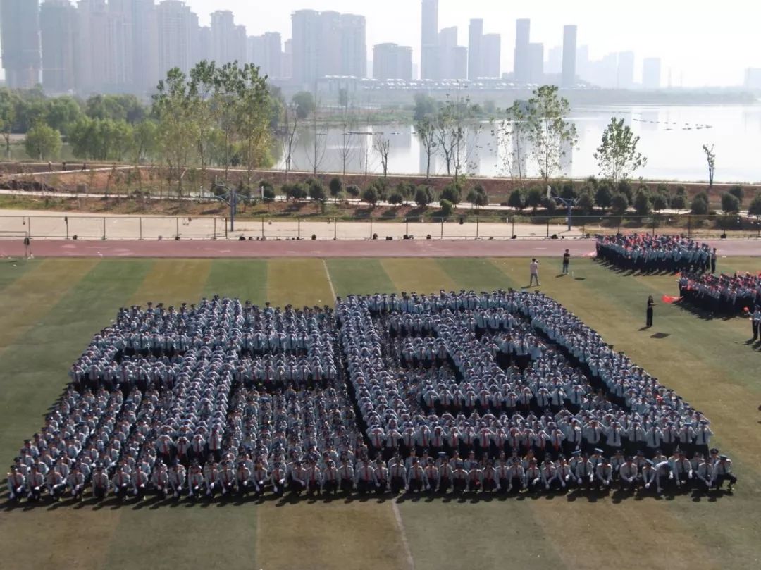 随后,2019级新生齐唱《红旗飘飘》以“青春告白祖国”庆祝祖国70华诞,在歌声中方阵不断变换,依次摆出“中国1949-2019”、“工商2002-2019”,方阵一次次灵活变换有条不紊,19级的新生们都精神抖擞,完美的完成了此次军训汇演。