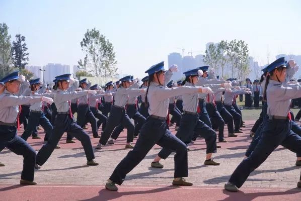 “军体拳,准备!”随着教官的一声令下,只见200多名新生迅速整齐有序地组成全新方阵,在教官的指令下,大家目光如炬,动作铿锵有力。不少女生也参与了此项表演,她们毫不逊色,一招一式间颇具巾帼风范,赢得现场热烈掌声。