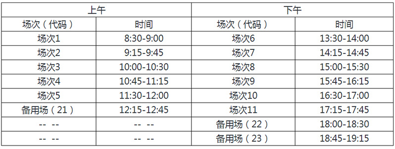 口语考试(CET-SET4)考试时间为5月22日(F211次),英语六级口语考试(CET-SET6)考试时间为5月23日(S212次)。具体场次安排如下: