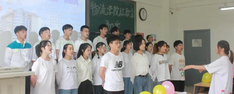 图为20级物流管理升本一、二班演唱《我们走在大路上》