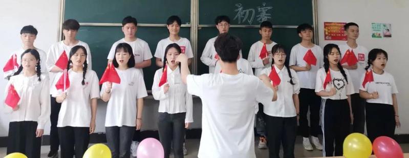 图为19物流管理本二班演唱《没有共产党就没有新中国》