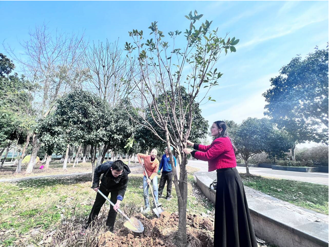 3月12日下午,物流学院多位教师与学生积极参加学校工会组织的“绿意葱茏,植树成林,春色满院”植树节主题活动。教师们拿着铁锹,拎着水桶来到静思湖畔的“春华秋实林”栽植桂树。