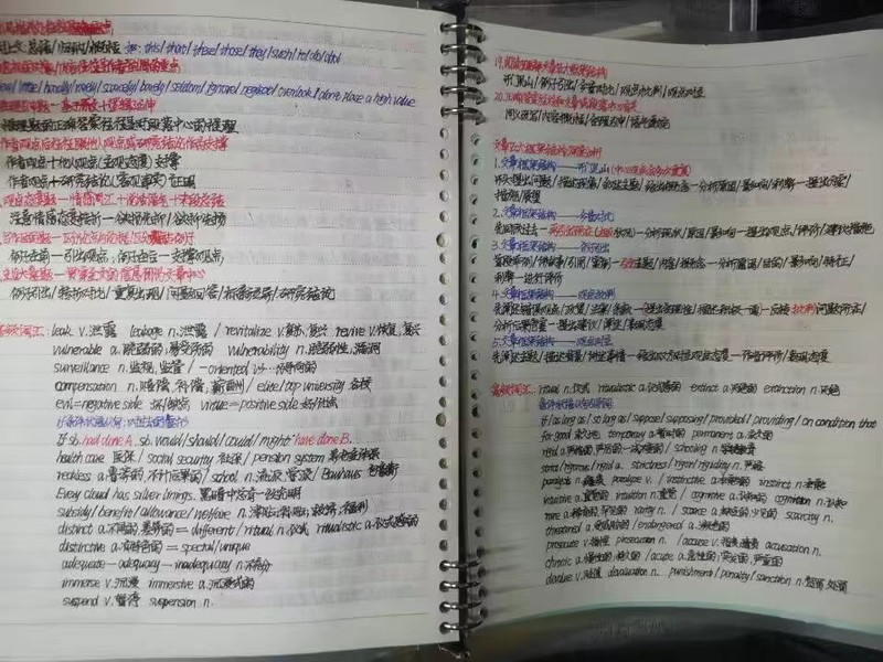 在考研期间,张桐制定了严格的学习计划,每天保持至少10个小时的学习时间,并针对薄弱科目分配5个小时进行强化训练。他深知英语在考研中的重要性,为了提升写作速度,他连续一年每天坚持练习英语作文, 最终英语成绩取得了显著的成效。