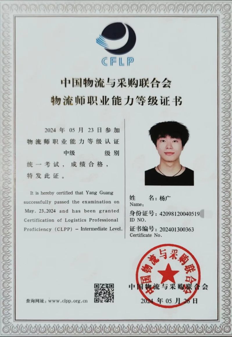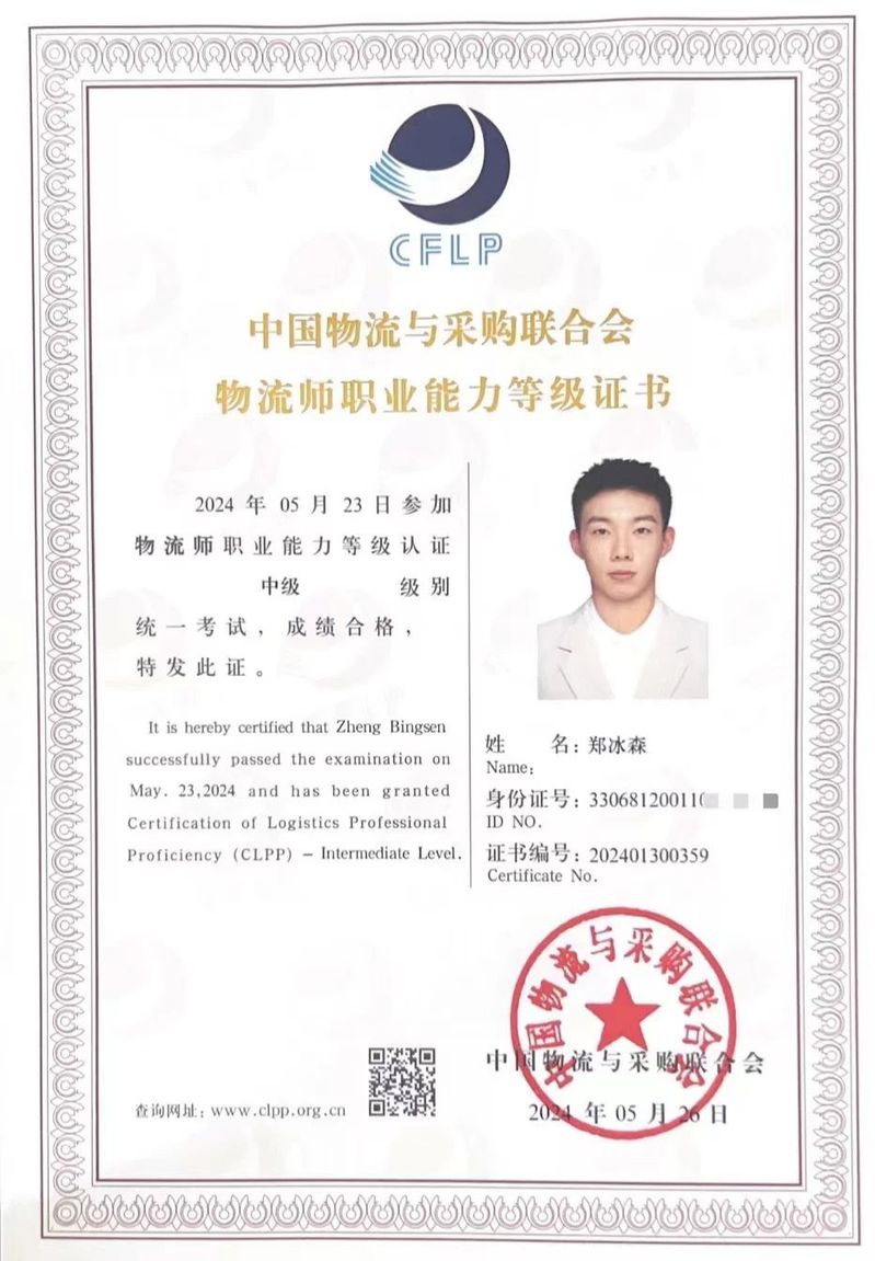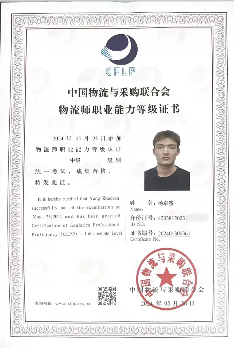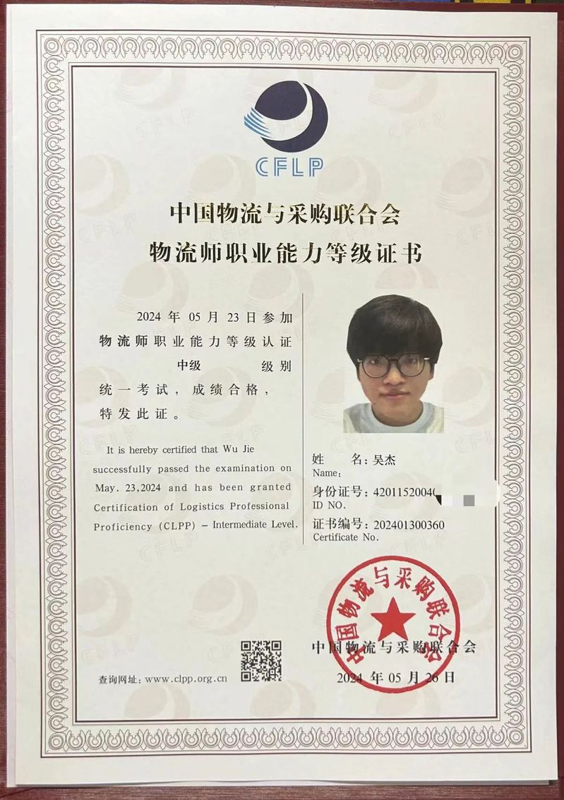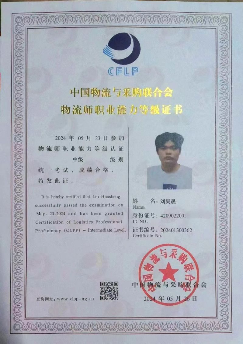 图为“西格玛”队成员获得中级物流师资格证书