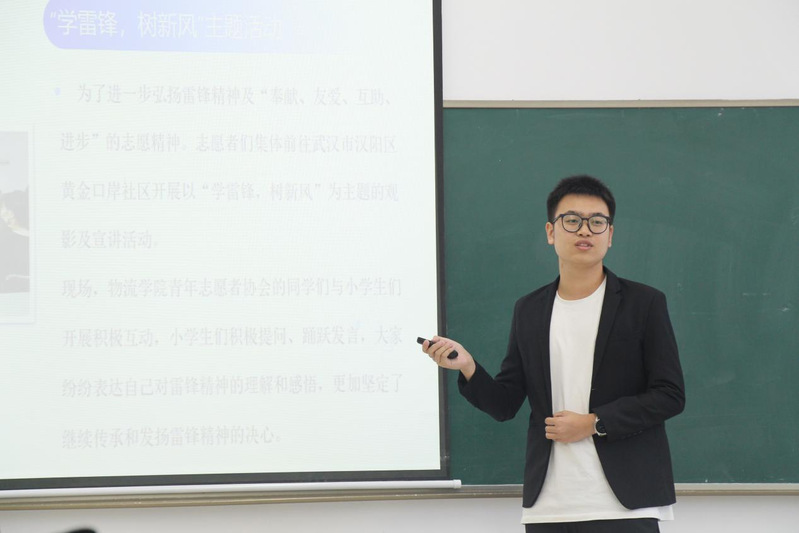 图为物流学院分团委青年志愿协会会长宗惠涛述职