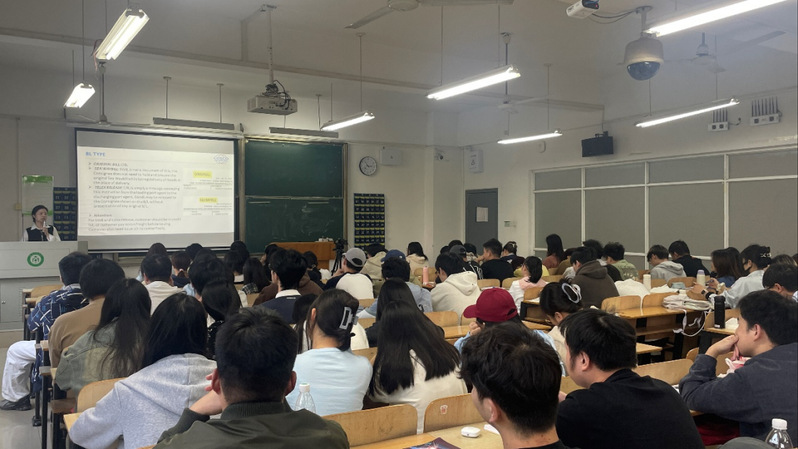 程浩讲师围绕“Shipping Process & Document Basics——航运流程与单证基础”这一核心议题,深入浅出地讲解了订舱指令(SI)、提单操作、集装箱规格、装运与开航时间等关键知识点。课堂上,学生们展现出极高的学习热情,与讲师频繁互动,提问与解答交织成一片活跃的学习氛围。课后,学生们意犹未尽,纷纷围绕讲师继续探讨专业问题。