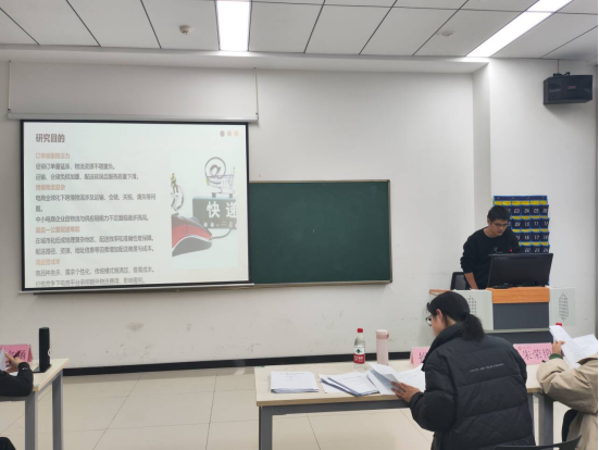 比赛现场,各参赛团队轮番上阵,通过精心制作的PPT,向在场的评委和观众展示自己的物流方案。他们通过背景分析,具体流程与特色优势详尽的介绍方案,利用图表、动画等多种形式,使方案内容更加直观易懂。
