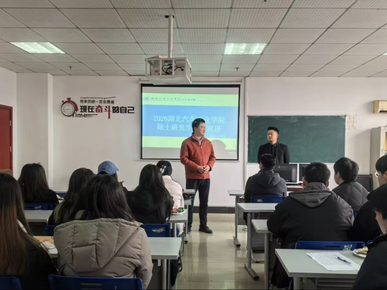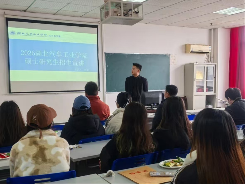 分享会上,湖北汽车工业学院经济管理学院胡副院长首先向同学们详细介绍了汽车工业学院的学术优势与校园环境,并深入解读了该校的研究生招生政策。他鼓励同学们要树立远大志向,勇于挑战自我,在学术道路上不断攀登新的高峰。