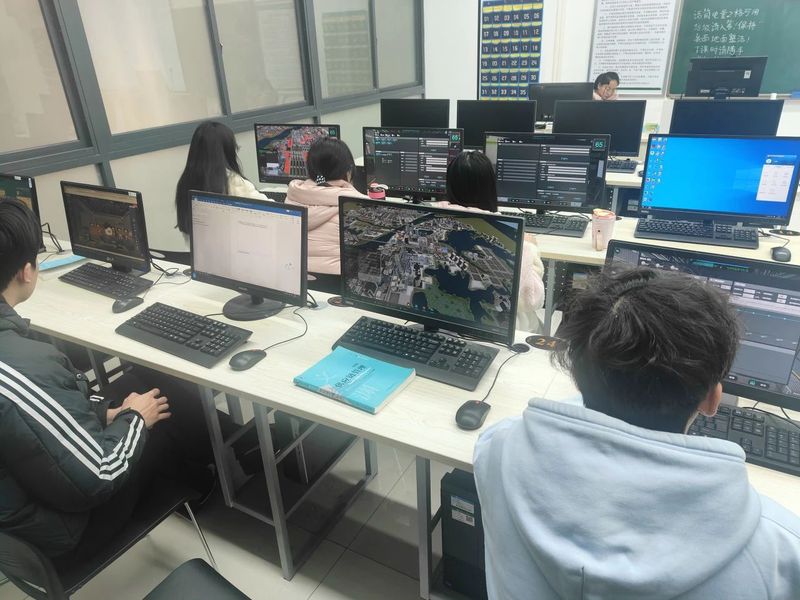 物流学子们通过电脑仿真模拟物流供应链中的实际操作。同学们小组合作,分工明确地完成一项又一项任务。