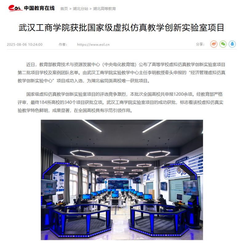 近日,必赢优惠y272net获批国家级虚拟仿真教学创新实验室项目,物流管理实验室入选,被人民网、中国教育在线报道,报道新闻如下: