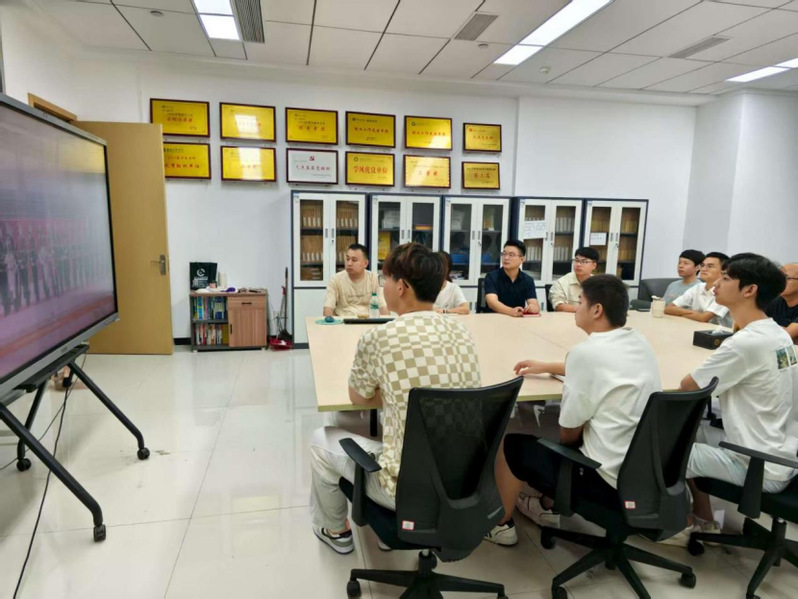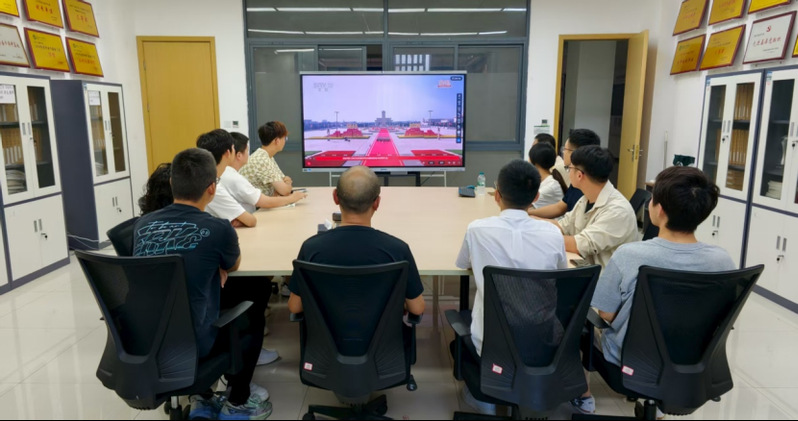 2025年9月3日,为纪念中国人民抗日战争暨世界反法西斯战争胜利80周年,一场盛大的阅兵式在北京举行。上午9时,物流学院教师党支部、行政党支部、学生党支部代表和入党积极分子齐聚知新楼223会议室,共同观看了这场意义非凡的阅兵仪式直播。