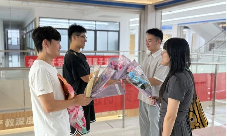 当“送花使者”轻轻推开一扇扇虚掩的门,有的老师正在专心备课,有的在和同学讨论问题。看到同学们送上的花束,听到“老师,节日快乐!”的祝福,老师们又惊又喜,脸上露出欣慰的笑容。