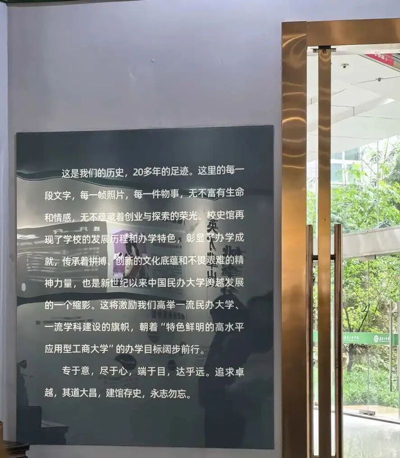 中厅一聚焦办学历程,以珍贵历史图片、实物展品及文字说明,系统回顾学校2002年创办后的发展轨迹。展品包含早期办学批文、校名更迭资料、创始人履历及历任校领导介绍,再现各阶段重要事件与阶段性成果。