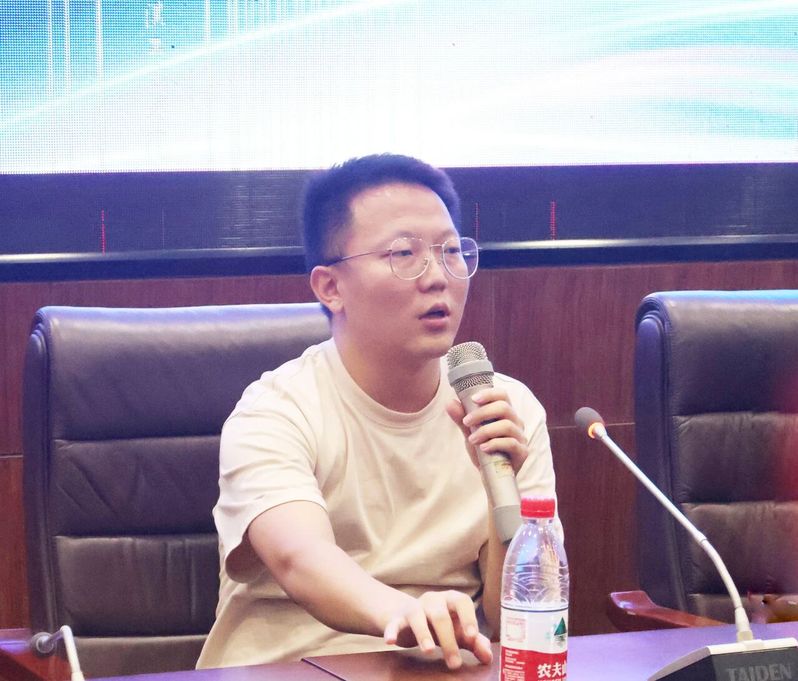 苟长江首先讲述了自己的职业历程,2020年大四实习时先在上海中远海运分公司实习,积累了一定的行业经验后,毅然回到深圳开启创业之旅。如今,他担任深圳市旭图科技有限公司总经理,带领这家跨境贸易公司在创业第二年便实现年销售额3亿+,团队规模达200人+。在分享创业理念时他表示,深挖北美和欧洲消费市场,精准把握国内原材料供应链,自主开发设计契合市场的产品,最终形成供销一体的闭环模式。面对在座的大学生,苟长江以自身经历为引,鼓励大家:“别等机会,去创造机会;野心要有,但要和执行力匹配;保持积极,把每次挫折都变成复盘和进步的台阶。”
