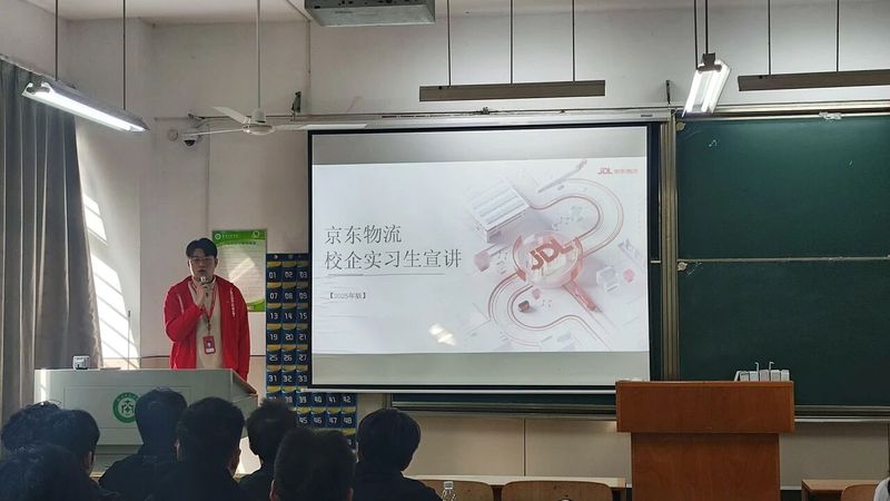 宣讲会开场,京东华中区湖北供应链校招负责人王焯晨介绍了京东作为物流企业的社会责任及多个关键领域的积极作为。在抗击疫情期间,京东物流凭借自身的物流网络和高效的配送能力,迅速响应,为各地输送了大量的医疗物资和生活必需品,成为保障民生、抗击疫情的重要力量。在助力乡村振兴方面,京东物流积极建设农村电商物流体系,帮助农产品走出偏远山区,拓宽销售渠道,为农民增收致富贡献了重要力量。同时,京东物流还大力推动绿色物流发展,推广环保包装、使用新能源车辆,努力降低物流活动对环境的影响。这些举措让在场学子深受触动,对京东物流的企业文化有了更深刻的认识。
