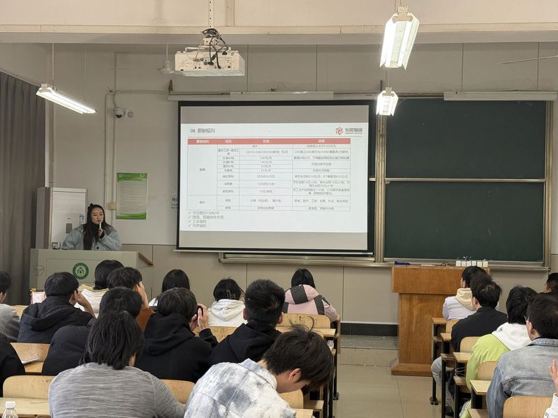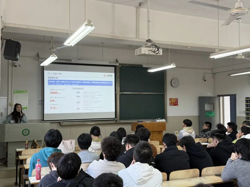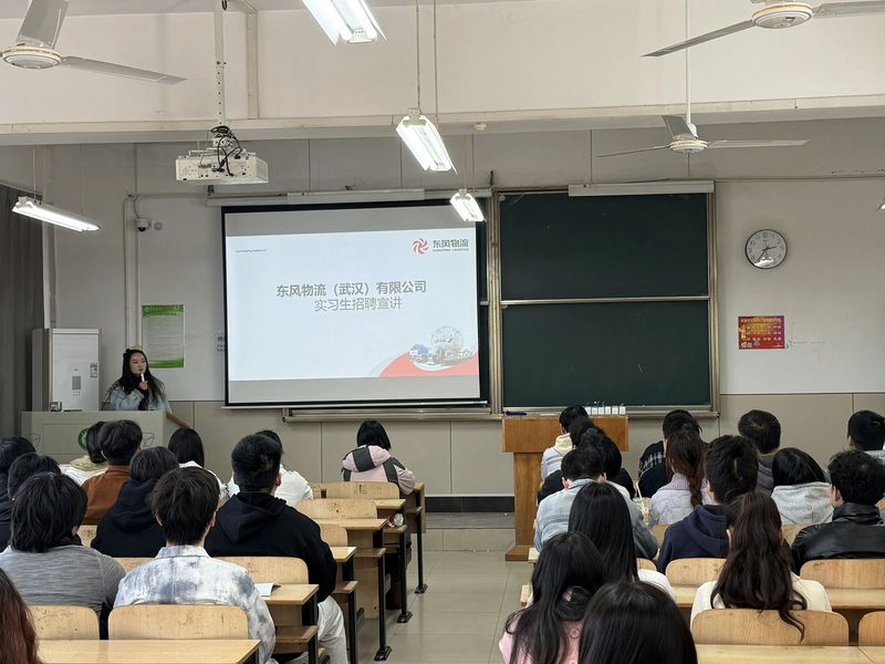 随后,东风物流有限公司校招负责人刘一晗作为主讲人,为同学们带来了一场内容详实、生动精彩的宣讲。主讲人先后介绍了公司的发展历程、核心业务、企业文化、人才理念,以及本次招聘的实习岗位需求、培养体系和职业发展路径。她结合物流行业的最新趋势与实战案例,分享了企业对物流人才的能力期望,并诚挚邀请有志于物流行业的学子加入东风物流,携手成长。