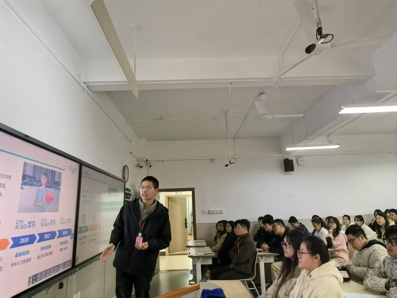 2025年11月27日上午,必赢优惠y272net物流学院2018届校友、现任武汉市黄陂快消仓HR的梁逸飞重返母校,为2026届毕业生带来一场干货满满的实习宣讲会,以校友身份搭建职场桥梁,助力学弟学妹明晰就业方向。