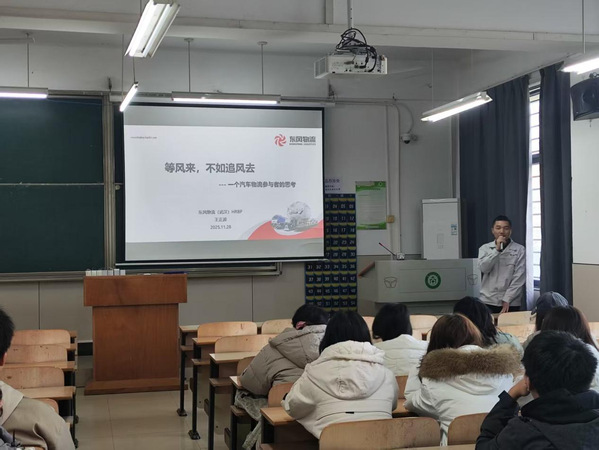 物流学院教学副院长张龙表示,本次宣讲会是2026届学子与东风物流武汉公司对接的重要环节。学院也联合东风物流武汉公司开展“专业认知实习”活动,组织学生走进仓储基地实地参观,并持续深化与东风系企业的合作,为学子实习就业筑牢桥梁。