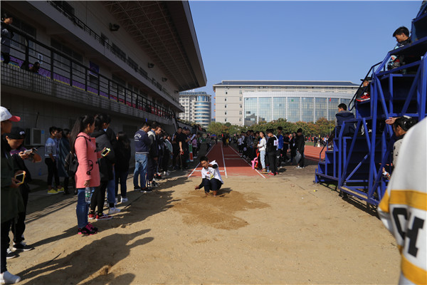 “石成晨加油,你是最棒的!”上午10:00,在女子100米赛道旁,文法学院的学生们正在为16级新闻专业的学生石成晨呐喊助威,最后她以14.56秒的成绩夺下了女子100米短跑冠军。信息工程学院的学生夏志强凭借着顽强的意志力,包揽了男子组800米、1500米长跑冠军。在跳高比赛中,来自民族教育学院的以1.76米的成绩摘得冠军。“初三的时候就取得了南阳市男子跳高第一的成绩并打破了市跳高记录,之后被体育特招进了南阳市一中田径队。这次比赛我已经刷新了个人最好成绩,下一次我会更加努力的。”李勃衡充满信心地说。