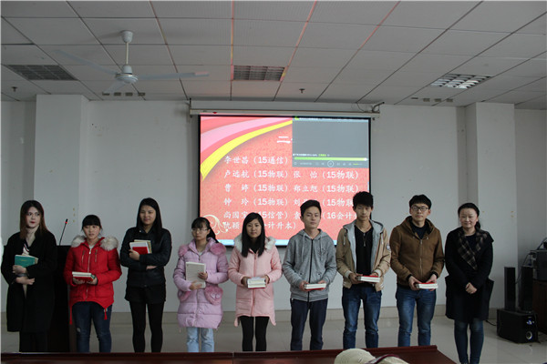 随后,孙松发副书记对获奖学生表示祝贺,并表示,每年新生入学军训过后,学校都会邀请教育界的知名人士来开展读书报告辅导会,目的在让学生明白读书的重要性,倡导同学们好读书、读好书。他强调,大学生应以学习为主,看书为重,这才是务正业,读书越多,越觉得自己不足,才能完善自己,然后进步。