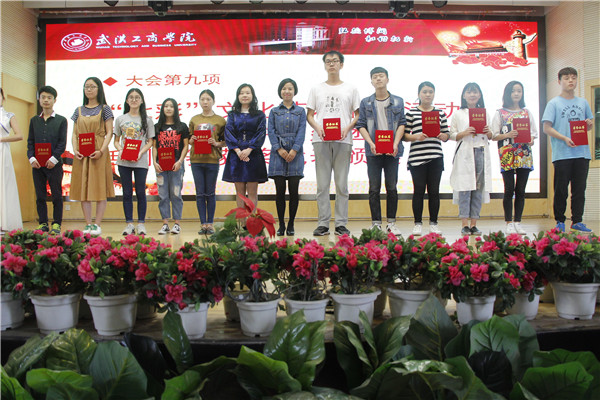 大会在庄严的国歌中拉开了序幕。随后,陈义文部长宣读了《关于表彰2016-2017学年“青年标兵”、“红旗团支部”、“先进团支部”、“模范团干”、“优秀团员”以及“七彩”文化艺术节子活动获奖的决定》,授予胡笑沙等五名同学“青年标兵”荣誉称号,信息工程学院2014级计科实验班等五个团支部“红旗团支部”荣誉称号,管理学院2014级会计本10班等4个团支部“红旗团支部”荣誉称号,任豫媛等76名同学校级“模范团干”荣誉称号,罗娇娇等262名同学院级“模范团干”荣誉称号,张兴宇等675名同学校级“优秀团员”荣誉称号,周琼等725名同学院级“优秀团员”荣誉称号,并且对七彩文化艺术节子活动中获得冠亚季军的学院和个人进行了表彰。陈伟书记、孙松发副书记、桂裕清副校长、王曼部长等领导分别为获奖学院和个人颁发荣誉证书和奖状,并合影留念。